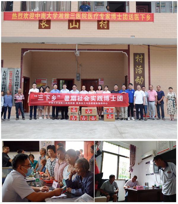 中南大学湘雅三医院支援江华“三下乡”博士团是医院团委(医务社工与志愿服务指导中心)重点打造的一支社会实践博士团,也是中南大学团委重点支持的党员博士医疗下乡团队。自2013年以来,博士团多次奔赴江华县开展“三下乡”活动;2016年10月,为长山村卫生室送去了价值7万元的医疗器材,使这块“麻雀地”有了“大设备”;2019年,首次开展面向县人民医院、乡镇卫生院、村卫生室、贫困村老人儿童及贫困户的系列医疗、科技、文化活动,得到全国二十余家媒体报道。博士团瞄准江华县,以医疗下乡为主体,积极发挥“智囊团”与“思想库”作用,广泛开展包括医学博士下乡、大型专家义诊、学科建设指导、医疗技术培训、临床查房带教、疑难病例讨论、医疗改革调研、青少年读书导学等在内的系列活动。