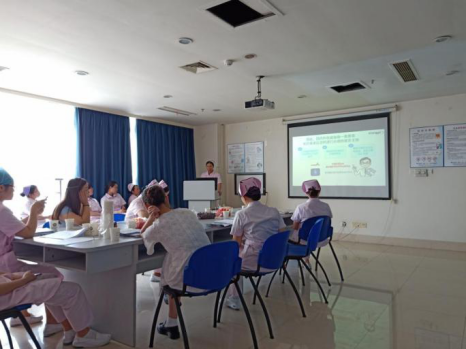 随后,外科片区科护士长、营养小组组长龚妮以《化疗相关恶心、呕吐患者的营养管理》为题进行了授课,以化疗患者营养不良为例讲解了化疗患者的常见营养问题及对策,同时对营养不良的五阶梯治疗进行了详细的阐述,强调营养支持是推行ERAS的重要环节,可以明显提高治疗效果,减少患者术后并发症,降低医疗费用,减轻社会及家庭负担,因此护理人员要提升专业知识,从患者入院开始即重视其营养管理,更好地为患者提供精准护理服务。