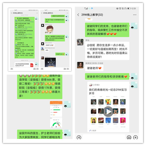 随着疫情好转,9月份护理实习生将返回医院开启线下实习,线上教学作为疫情防控下泌尿外科教学团队新尝试,取得了良好的结果。线上教学结束后,科室特别制作了视频《我们的青春时光:纪念29W实习岁月》,带着29W所有老师的祝福,学生们将开启新的实习征途。护士长崔丽娜提到,线上教学新实践彰显了新湘雅护理教学相长的理念,促进了泌尿外科护理教学发展,29W护理团队将不忘初心,砥砺前行,力争将教学打造成科室王牌,为“双一流”学科发展贡献力量。