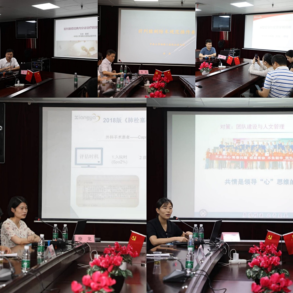 下午2点,几位专家教授进行了一场丰富的理论知识讲座,内容涵盖了前列腺癌经典内分泌治疗的安全共识、前列腺剜除术规范操作要点、B超引导下经皮肾穿刺体会、VTE防治新湘雅经验、住院患者安全管理等。讲座结束后,两院专家团队就临床热点问题进行了深度探讨和交流,大家一致认为在这样轻松愉悦的氛围下进行交流学习探讨,既传递了前沿诊疗技术、护理管理模式,又充实了自己的知识储备,增进了两院之间的友谊,惠民利民。