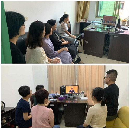 (图上:器官移植科党支部,图下:部分党总支书记集中观看)