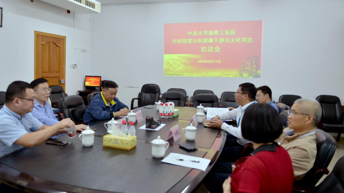 9月17日下午,医院综合楼一会议室举行了中组部第10批援疆干部刘火旺同志欢送会。医院党委副书记杨飞龙,党委委员、副院长朱晒红及相关科室和总支负责人参加了欢送会。