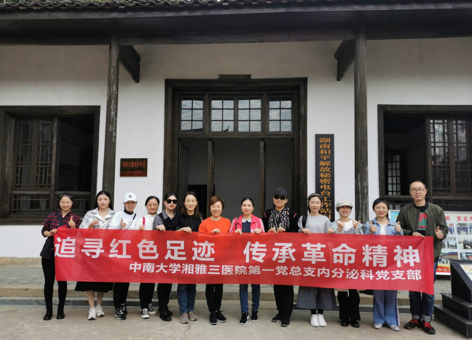 10月25日,中南大学湘雅三医院第一党总支内分泌党支部来到了湖南和平解放秘密电台工作站旧址,组织开展“追寻红色足迹,传承革命精神”主题党日活动。
