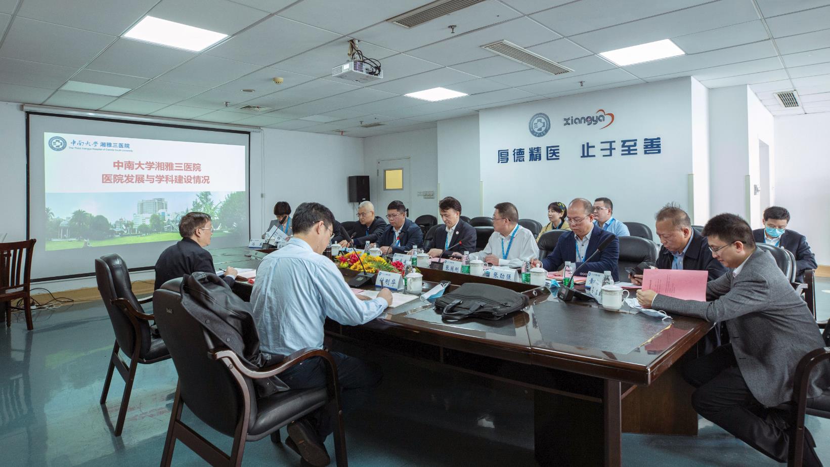 中南大学办公室主任付刚华,湘雅三医院党委书记何庆南、院长张国刚,及全体在院院领导参加了调研座谈会。会议由医院党委书记何庆南主持。