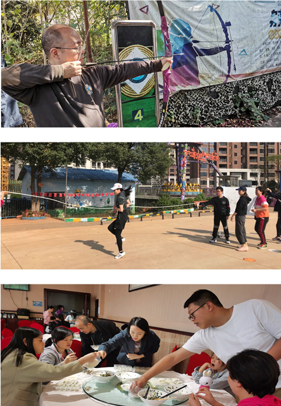 上午进行的是拔河比赛和跳绳比赛。第二、五、六分工会分别组队,科主任、护士长纷纷上阵。拔河比赛现场气氛热烈,上场队员奋勇拼搏拧成一股绳,各个领队指挥调度斗志昂扬,啦啦队员拼尽全力呐喊助威。三支队伍互不示弱,整个比赛场上洋溢着队员们的欢呼声、呐喊声。经过激烈角逐,六分会勇夺桂冠。集体跳绳比赛由两名会员甩绳,10名会员依次跳出8字形,以规定时间内集体跳绳个数最多的队伍为胜,二分会拔得头筹。射箭比赛各分会派代表参加,在现场教练的指导下体验传统运动项目,五分会收获最丰。下午的包饺子、钓鱼、采摘等丰富多彩的活动让大家充分放松,各分会均积极参与。