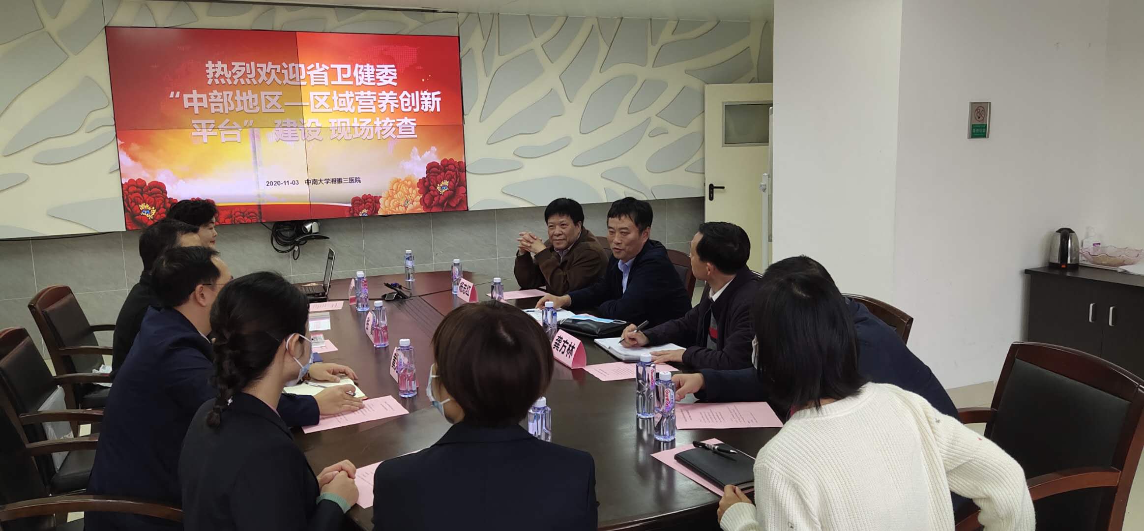 11月3日,湖南省卫生健康委食品安全标准与监测处副处长孙永忠等一行,代表湖南省卫生健康委对中南大学湘雅三医院参与“中部地区·区域性营养创新平台”创建工作进行现场核查。医院医务部主任张翼、临床药物试验基地主任黄志军和营养科主任刘敏分别带领临床药物试验基地、营养科接受了现场核查。