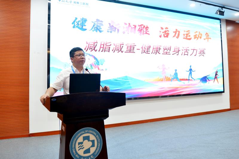 5月11日下午,中南大学湘雅三医院减脂减重-健康塑身活力赛在外科楼二楼学术报告厅启动,活动在院工会、营养科、健康管理中心共同组织的“合理饮食、科学运动”健康知识讲座中拉开序幕。医院党委副书记、工会主席杨飞龙出席,参与“减脂减重-健康塑身活力赛”的职工参加了培训。讲座由工会常务副主席熊晓云主持。