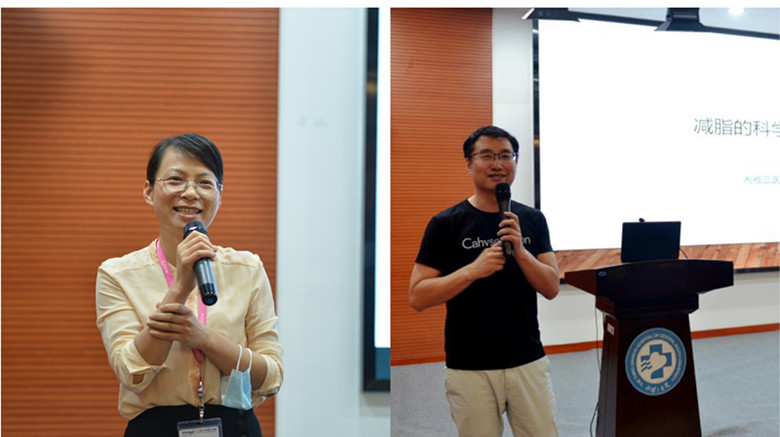 随后,营养科主任刘敏教授以“窈窕身材,健康减脂”为题,讲解了定义肥胖的标准,指出肥胖的危害、科学减脂方法,建议大家远离高糖、高油、高盐。她指出,众多减肥方法中,能量恒定、平衡膳食+运动才是最佳的减肥办法。