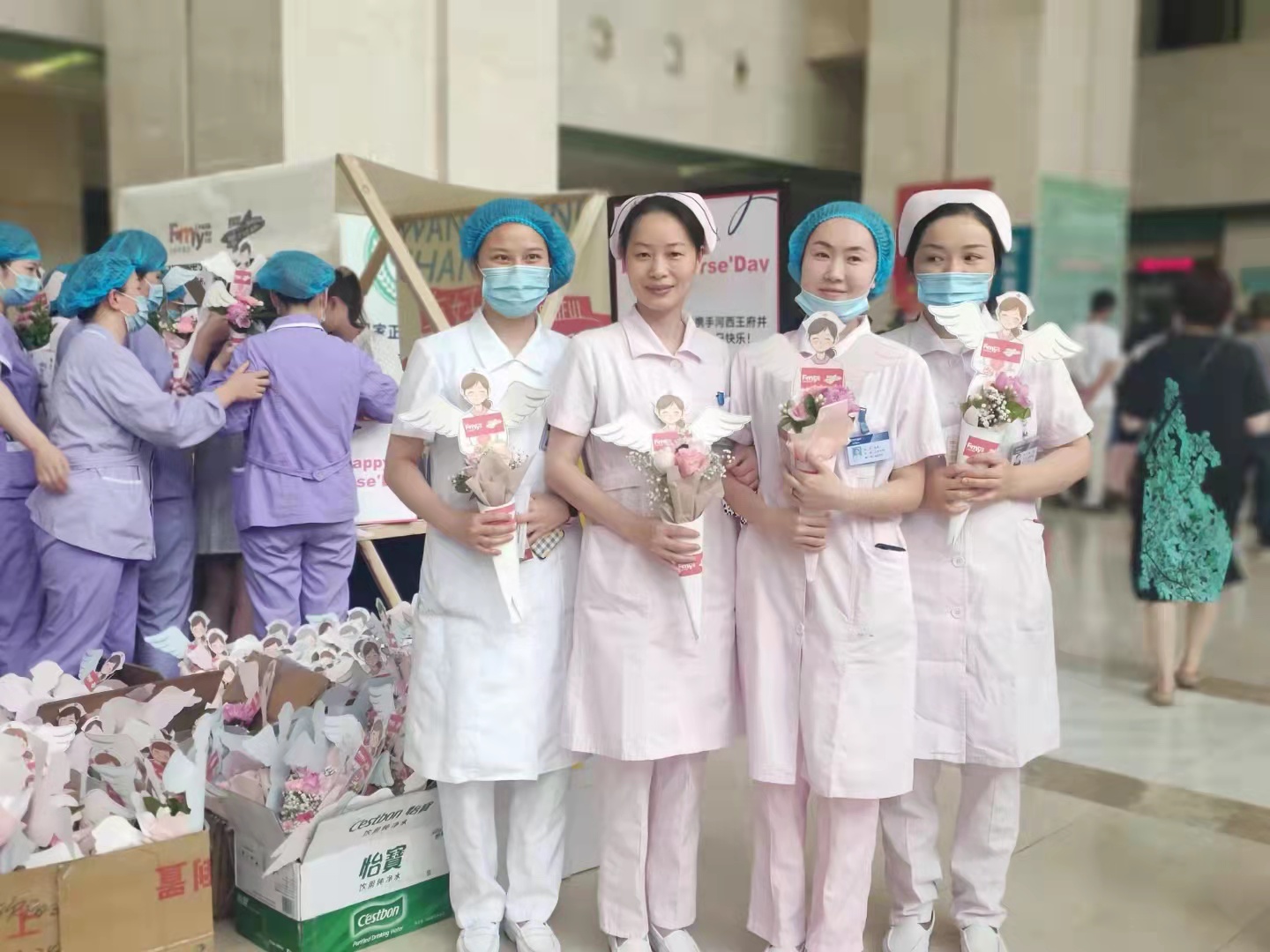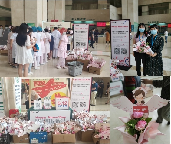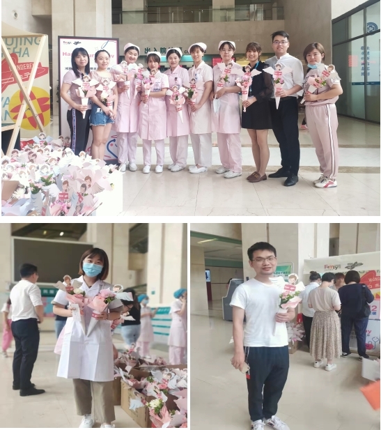 5月12日是第110个国际护士节,为表达对医院护理人员的关心与问候,中南大学湘雅三医院团委联合长沙河西王府井商城开启新湘雅护理天使守护计划,为医院护理人员带来了美丽的鲜花和多样的礼品福利。院团委副书记邓渲桐、李潇潇,团委委员戴萍萍、石勇,团干余滔、胡铃等都来到活动现场,为大家送上暖心的节日祝福。