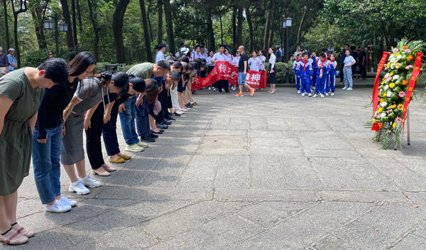上午十点,正是骄阳似火的时候,党支部一行人走进开慧陵园,一首《蝶恋花》映入眼帘:“我失骄杨君失柳,杨柳轻飏直上重霄九。问讯吴刚何所有,吴刚捧出桂花酒。寂寞嫦娥舒广袖,万里长空且为忠魂舞。忽报人间曾伏虎,泪飞顿作倾盆雨。”党支部书记王建刚代表全体党员向纪念碑敬献花篮,并带领大家重温入党誓词。誓言回荡,荡涤心中一切浮躁,只剩下一腔忠勇。