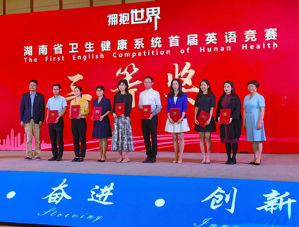 5月28日,由湖南省医学教育科技学会国际交流合作专业委员会和湖南省卫生健康委国际交流中心主办的湖南省卫生健康系统“拥抱世界”首届英语竞赛总决赛在湖南宾馆芙蓉厅举行。湘雅三医院内分泌科王芳医生获得此次大赛二等奖,医院血液内科主任李昕教授作为特邀嘉宾出席并做了题为《How I learn English》的分享。医院副院长朱利勇作为颁奖嘉宾出席,国际交流与合作办主任刘新春作为嘉宾观看比赛。