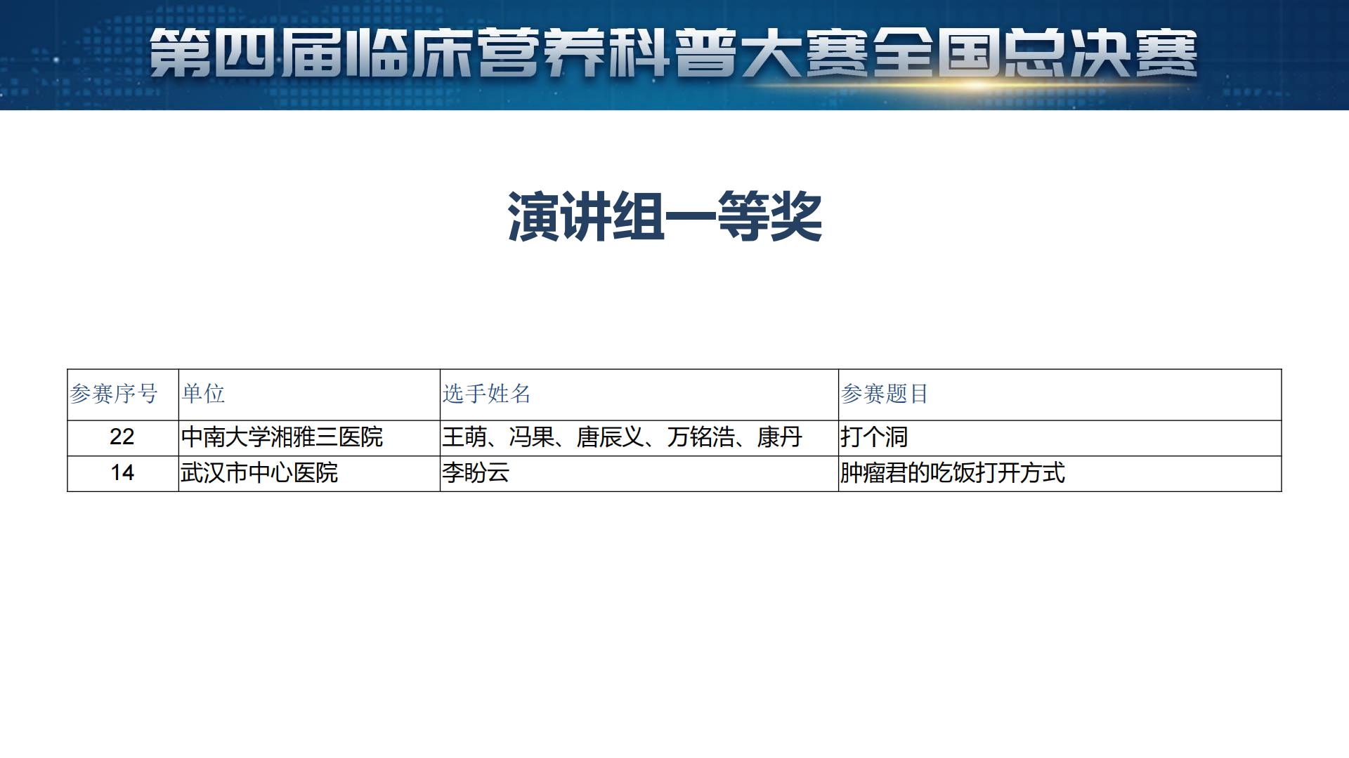 12月17日,由中国营养学会肿瘤营养管理分会、中华医学会北京分会临床营养分会、北京市临床营养治疗质量控制与改进中心和雅培公司共同开展的“第四届临床营养科普大赛全国总决赛”在线上成功举办,湘雅三医院营养科与肿瘤科团队斩获一等奖。