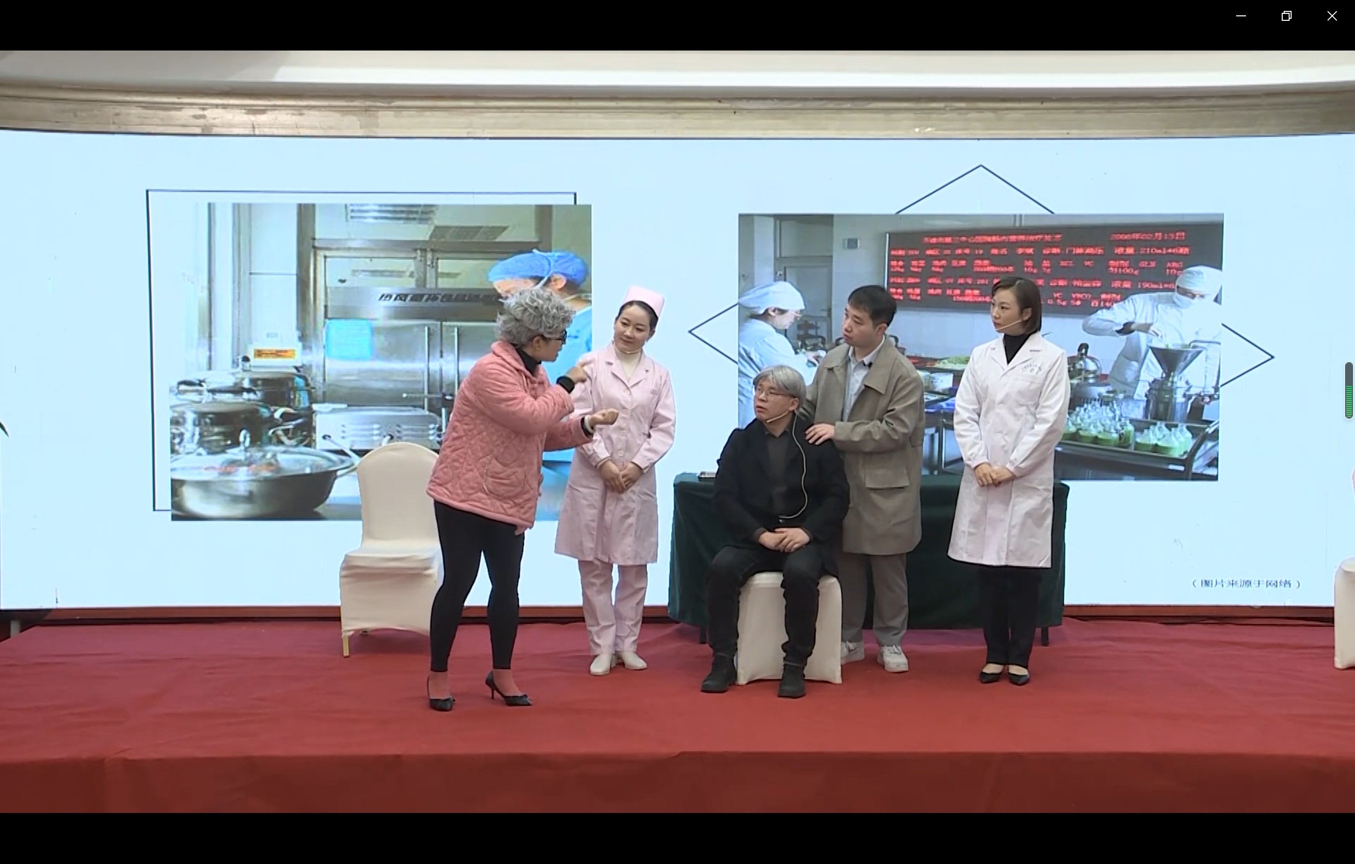本次比赛覆盖了全国7大赛区300余家医院600余个参赛作品,受到了全国营养界的关注。在医院领导的大力支持下,营养科选定了小品这一喜闻乐见的表现形式,从8月份开始策划剧本、选定演员、对台词、排练,在湖南赛和中南大区赛均获得了第一名。决赛共24个参赛作品,2个一等奖名额,比赛形式多样,有快板、演唱、舞蹈等,竞争激烈,营养科和肿瘤科结合自身优势和临床科普经验,以诙谐幽默的语言和夸张的肢体动作,结合快板,打油诗等常见的表演形式,生动地科普了肿瘤病人胃造瘘的营养小知识,获得了评委的高度赞扬,在24个作品中脱颖而出,毫无悬念地斩获了第一名。