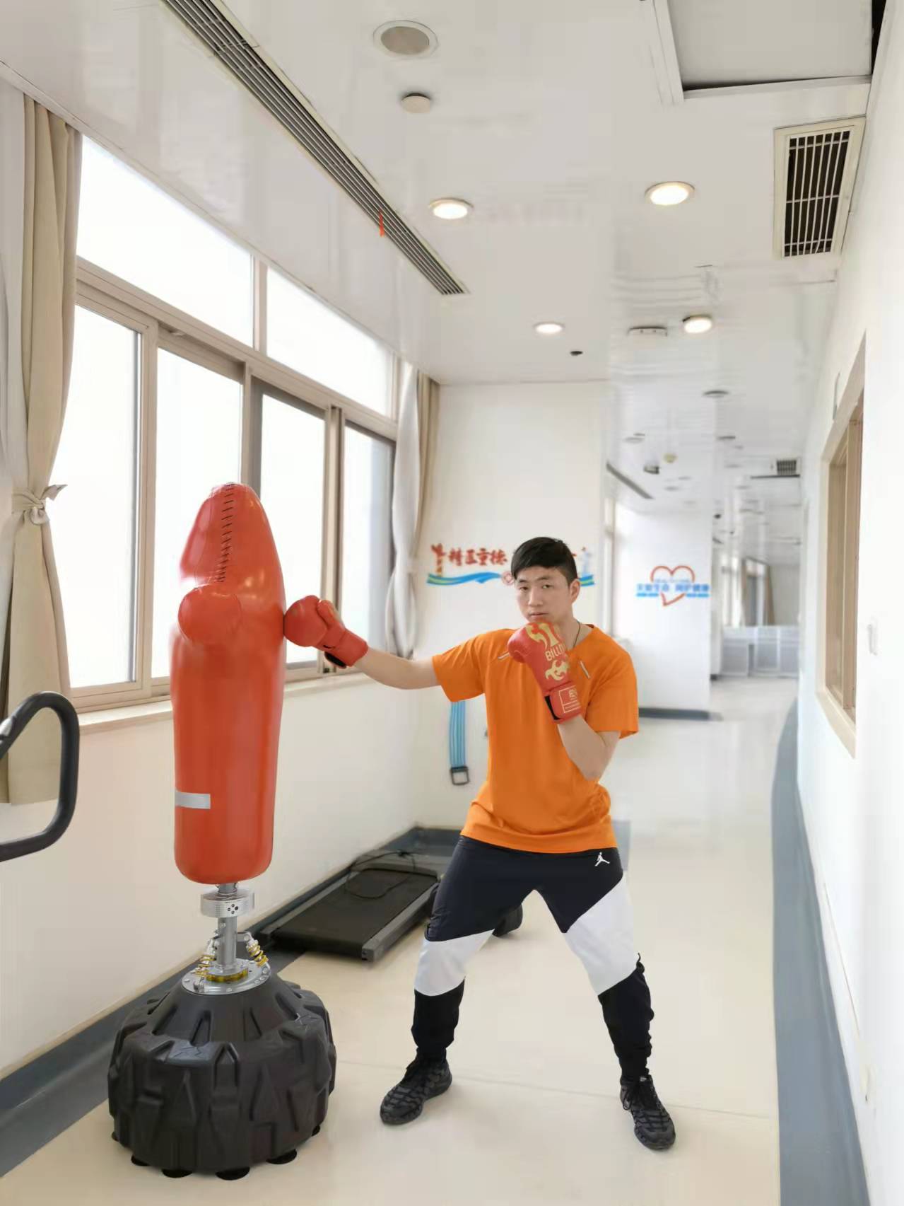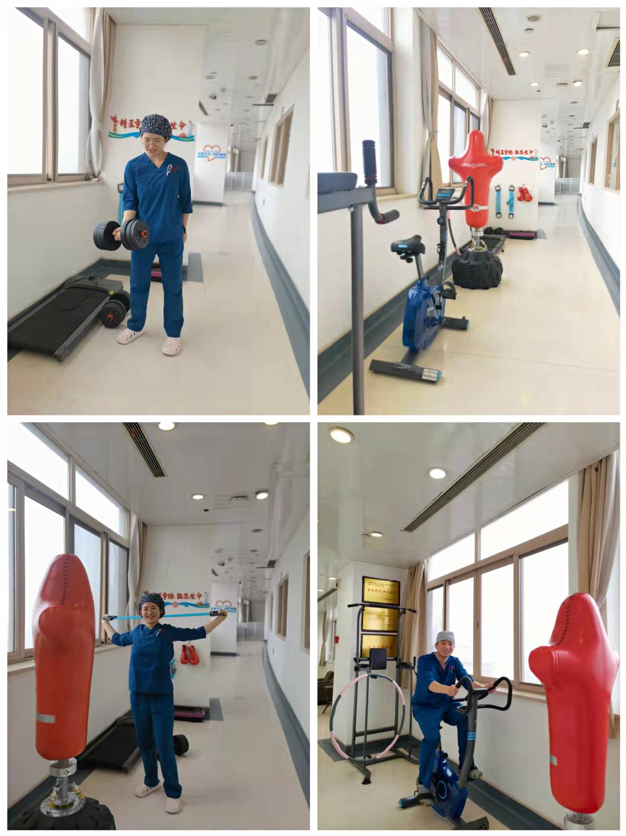 ICU工作任务繁重,医护同仁经常加班加点超负荷工作,大多数ICU医护人员都缺少规律运动和合理的锻炼。随着天气步入深冬,各种室外体育运动项目受到限制,为让大家在工作之余积极参加体育锻炼,支委会决定给全科医护人员创建一个开放共享、便捷舒适的健身场所。通过全面了解科室职工需求,广泛征求群众意见,最终确定在ICU外走廊搭建一处健身角,方便于大家业余时间加强运动,强身健体。方案一经推出,全体党员总动员,大家建言献策,助力健身角的搭建。很多党员纷纷表示自愿捐出个人健身器材,副护士长李伟主动捐赠了自己的动感单车,党员文溱捐赠了自家的跑步机。为丰富健身角的功能,党员们都主动捐款增购了多项运动器材,比如甩脂机、引体向上机等,让大家能够在健身的同时减压释负。此外,还在健身角配置了蓝牙音箱,大家可以根据个人喜好在健身的同时播放背景音乐。