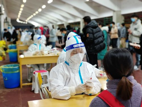关键时刻显担当。志愿者不分昼夜、不分晴雨,全体师生积极配合,采样工作经常连续工作数小时。科护士长吴小霞、卜平元是这支队伍的领队,她们都是利用医院工作之余兼顾这份工作,在长沙湿冷的倒春寒中,他们在偌大的体育馆冷得瑟瑟发抖;在学生公寓前临时搭建的雨棚中,雨珠顺着风,滴落在他们的面屏上,模糊了视线;无数次弯腰、下蹲、抬手、采样、手消,经常在结束后他们的手臂都举不起来。大家不问回报、全力以赴,每一个操作都从严、从紧、从细,争做最好。