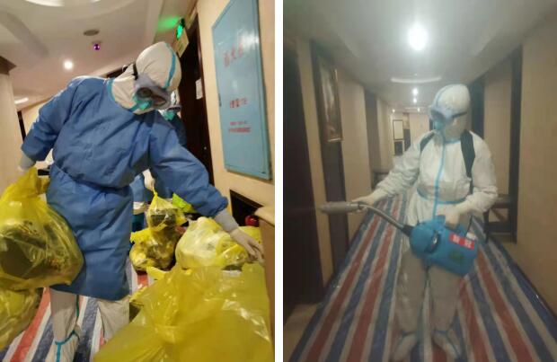 第二天开始,陆续入住酒店的隔友人数呈倍数增涨,面对107名隔离对象,仅有16名成员的团队即使全员出动仍然捉襟见肘。比起高风险的核酸采样工作,更为艰巨的是送餐、消杀、打包并转运近百份医疗垃圾等工作。队员穿上防护服,不到5分钟,面罩起雾,影响视野,工作不到10分钟开始汗流浃背、头晕脑胀,但没有一个人退缩。在转运垃圾时,甚至还要越过近20米的45度斜坡。这样的环境条件,这样几乎不可能完成的任务,考验着每个人的身体和心理承受能力。团队坚定“一切为了人民健康”“为人民服务”的信仰,以磐石般的意志超量完成工作。期间,出现了因工作到凌晨1点,过度劳累,失眠焦虑、腰痛站不起来、痛风等疾病发作等情况,队员们仍然工作如常,充分展示了艰苦奋斗、无私奉献的新湘雅精神。