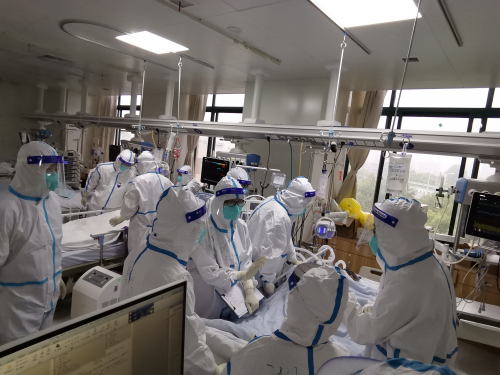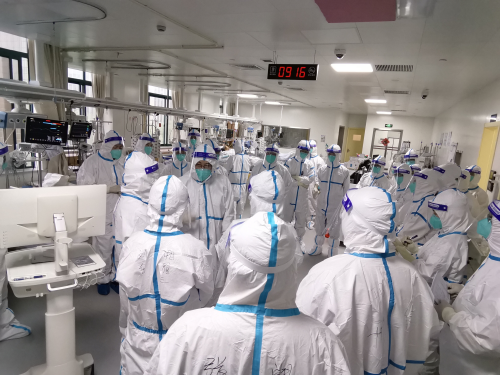 8点50,交班开始,护士老师详细介绍每位患者的护理情况后,便轮到我出场了。说不紧张那是假的,但看到身旁湘雅医院张丽娜主任,她也是我们医疗队医疗救治组组长,还有我们医院医务部的张翼主任及呼吸与危重症医学科刘纯副主任,再想想自己也是工作20年的重症医学科医生,便深吸一口气,开始向老师们有条不紊的汇报患者病情以及晚夜班变化。待我说完,虽隔着面屏完全看不出专家们脸上的表情变化,但此时,国家督导组组长邱海波教授的总结让我心里一块石头也落地了,并且还让我小小的得意一下,邱教授说:“今天的早交班很详细,不论医生还是护士都是目前我们见到最好的。”这一席话,瞬间点燃的我工作的热情,也激励了我在重症医学科继续攻坚的信心。