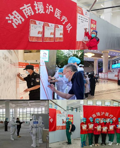 医务部主任张翼、呼吸与危重症医学科副主任刘纯、后勤保障部副主任龙烁组织湖南省援沪医疗队湘雅三医院队的26名队员与瑞金医院卢湾分院重症监护病房医务人员,开展名为“湘沪相手,共手平安”的手卫生宣传与签名活动,致力于提升重症人手卫生依从性,严控院内感染。