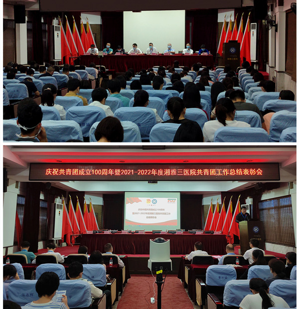5月26日下午,湘雅三医院召开庆祝中国共青团成立100周年暨2021-2022年度共青团工作总结表彰会。院领导何庆南、张国刚、杨飞龙、张劲强、邓云龙、欧阳文、汤英、朱利勇出席会议。全院中层干部及团干、团员青年代表共200余人参加会议。会议主会场设在门诊楼五楼多功能厅,分会场设在外科楼二楼学术报告厅,会议由党委副书记杨飞龙主持。
