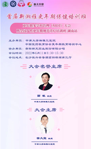 6月11日,首届新湘雅更年期保健培训班-更年期多学科管理(MDT)大会暨全国女性更年期规范诊疗培训班在长沙顺利召开。北京协和医院陈蓉教授、中南大学湘雅医院张瑜教授、中南大学湘雅三医院薛敏教授、徐大宝教授等10位专家学者受邀专题授课分享,省市内各医疗机构妇产科代表参会。会议采用线上线下结合模式,1000余人参与会议。