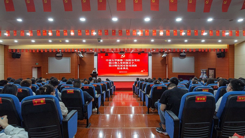 6月10日,中南大学湘雅三医院分党校在医院外科楼二楼学术报告厅举行2022年第11期入党积极分子及第13期发展对象培训班结业典礼,医院分党校校长、党委书记何庆南,分党校副校长、党委副书记杨飞龙,党委副书记、纪委书记张劲强出席,党委办公室、党委宣传部、团委负责人,各党总支书记以及全体学员参加。会议由杨飞龙副书记主持。本次培训班以网络培训方式开展,共有87名入党积极分子和52名发展对象学员,其中临床一线人员66名、行政后勤人员9名、学生64名,“双高”人员31名、援鄂医疗队员6名、援沪医疗队员1名。