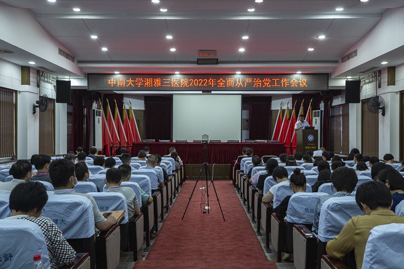 6月21日下午,中南大学湘雅三医院召开2022年全面从严治党工作会议,深入贯彻落实十九届中央纪委六次全会精神、教育部从严治党工作视频会议精神、学校第四次党代会和全面从严治党会议精神,总结医院2021年全面从严治党工作,部署2022年重点任务。会议主会场在门诊楼五楼多功能厅,分会场设在外科楼二楼学术报告厅。医院党委书记何庆南、院长张国刚等出席会议,会议由党委副书记杨飞龙主持。
