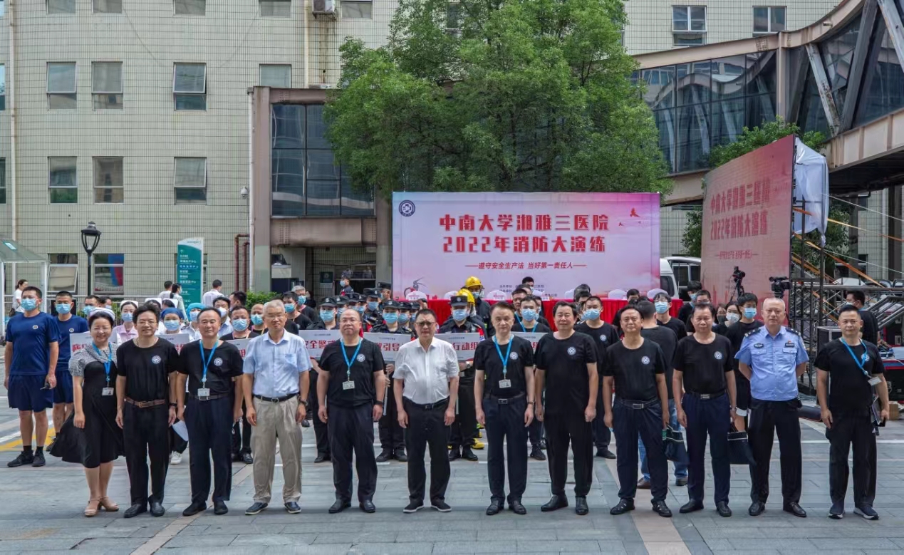 今年6月是全国第21个“安全生产月”,为全面深入贯彻“遵守安全生产法,当好第一责任人”的主题,唱响安全生产主旋律,6月28日,中南大学湘雅三医院以“安全生产月”活动为契机,结合当前安全生产“大宣讲、大比武、大演练”等专项活动,组织消防大演练活动。演练由医院党委书记何庆南和院长张国刚担任总指挥,副院长邓云龙担任副总指挥,出席此次演练的还有湖南省卫健委办公室二级调研员李珍球,省卫健委后勤服务中心副主任侯涛,中南大学保卫处副处长汤志斌,医院党委副书记、纪委书记张劲强,党委委员、副院长朱晒红,岳麓区公安分局银盆岭派出所副所长陈凯。