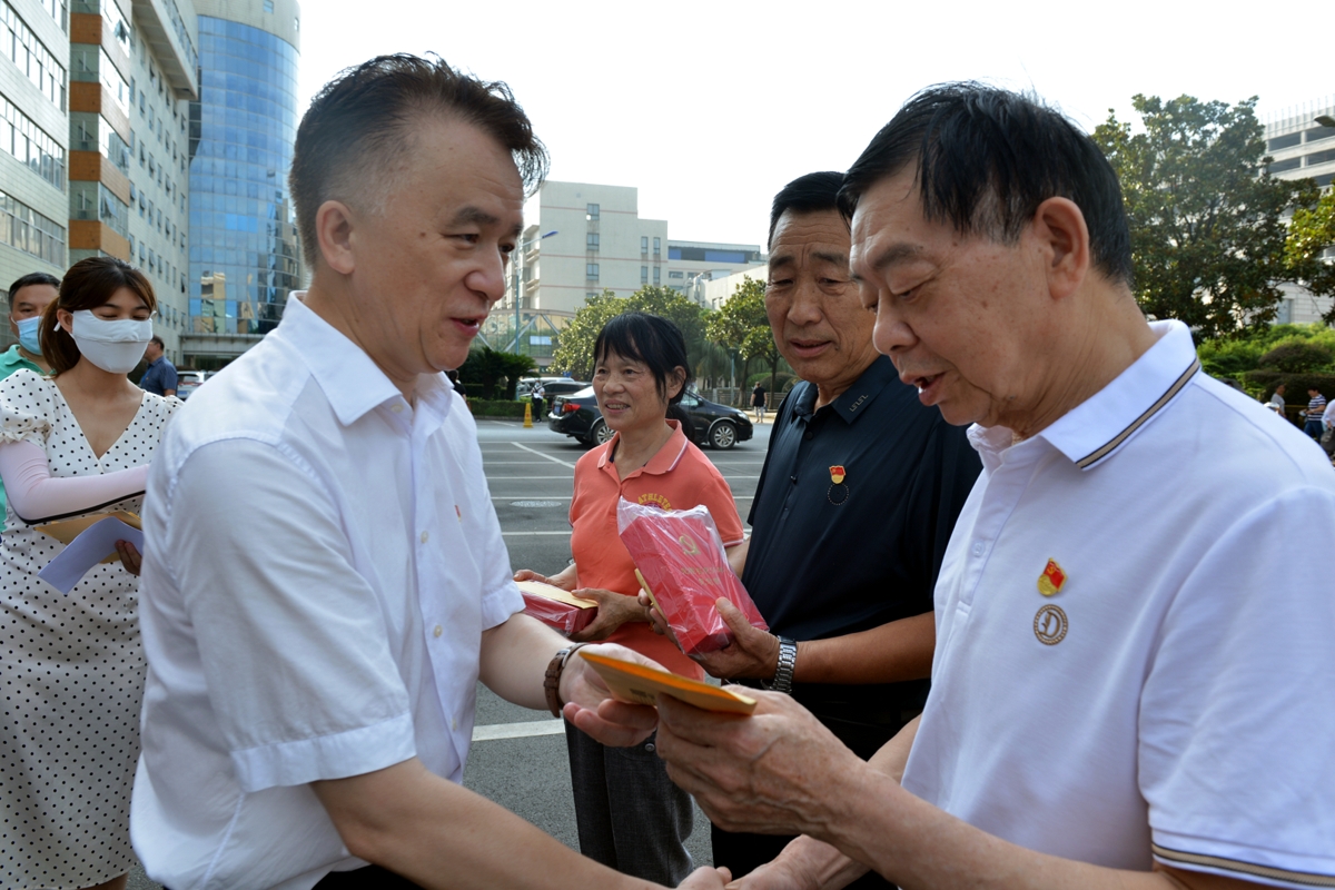 仪式后,院领导向在党50年的老党员颁发纪念章,并慰问了在场的老党员,送上祝福和慰问金。莫道桑榆晚,为霞尚满天。老党员们感谢党组织的关怀,表示将一如既往地支持党的工作,继续为医院发展添砖加瓦。