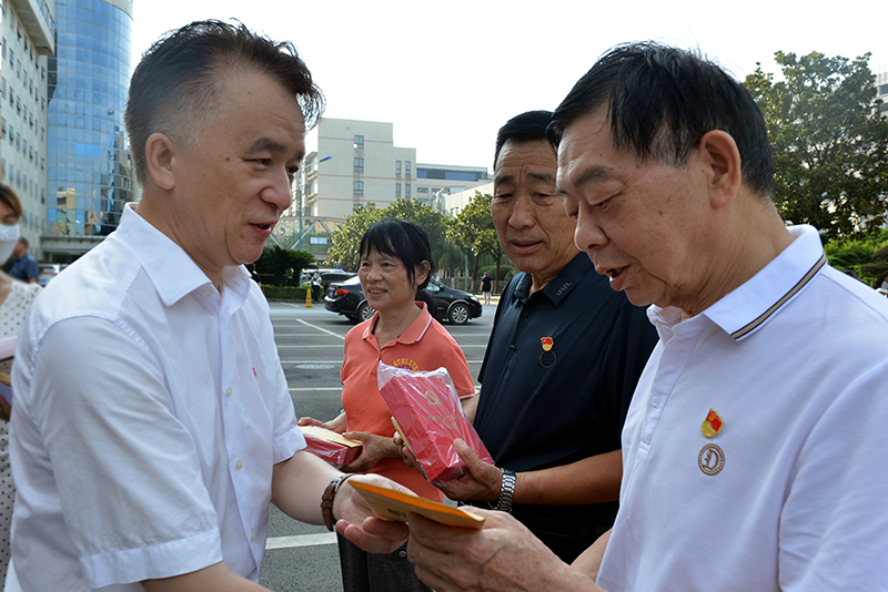 7月1日,中南大学湘雅三医院在庆祝建党101周年“七一”升旗仪式后,医院党委举行了“光荣在党50年”纪念章颁发仪式。医院党委书记何庆南,党委副书记杨飞龙,党委副书记、纪委书记张劲强为文德华、周美红两位老党员颁发“光荣在党50年”纪念章,医院部分老领导老党员、党委办公室、第十二党总支、离退休办公室负责人参加。