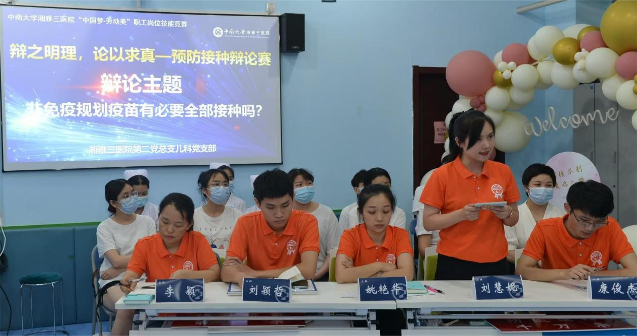 7月5日,湘雅三医院儿科党支部开展了预防接种知识竞赛和“辩之明理,论以求真”预防接种辩论赛。辩论赛是“中国梦·劳动美“职工岗位技能竞赛的活动项目之一,结合科室临床特色,充分调动教职工的积极性,旨在提高整体素质,提升免疫规划工作人员的工作能力,为医院高质量发展发挥出更好的作用。