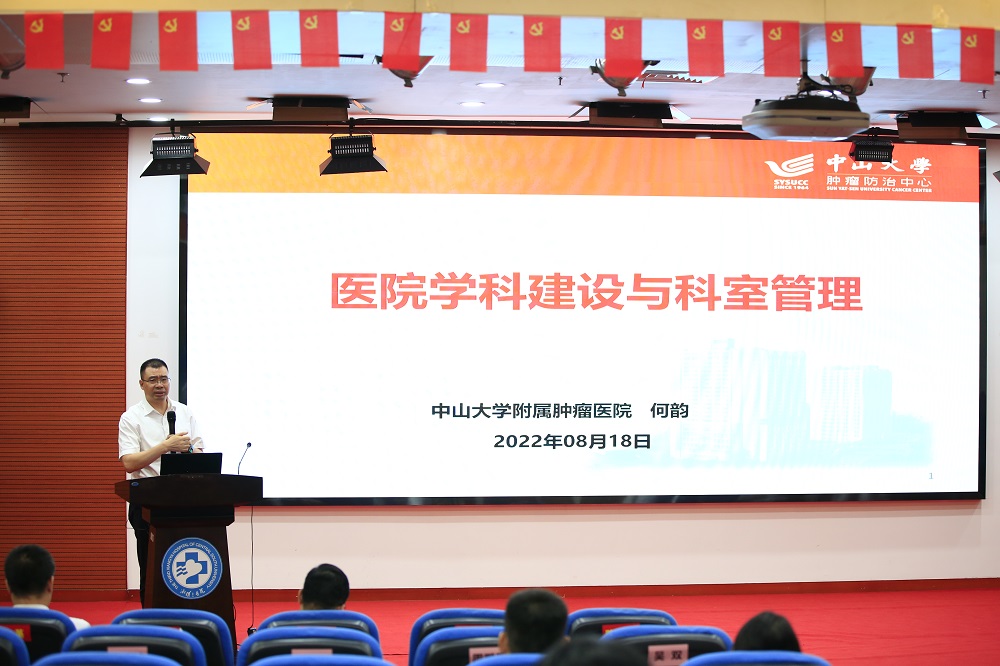 表彰大会后,医院还特别邀请了中山大学附属肿瘤医院党委副书记、纪委书记何韵教授进行《医院学科建设与科室管理》的学术讲座。何教授从学科建设的认知和理解、学科建设的主要抓手、医院和科室管理策略与举措、学科建设的体会和升华等方面,并结合中山大学附属肿瘤医院不分科室的学科建设历程,分享了医院管理管理和学科建设方面的经验体会,受到了在座人员的广泛好评。