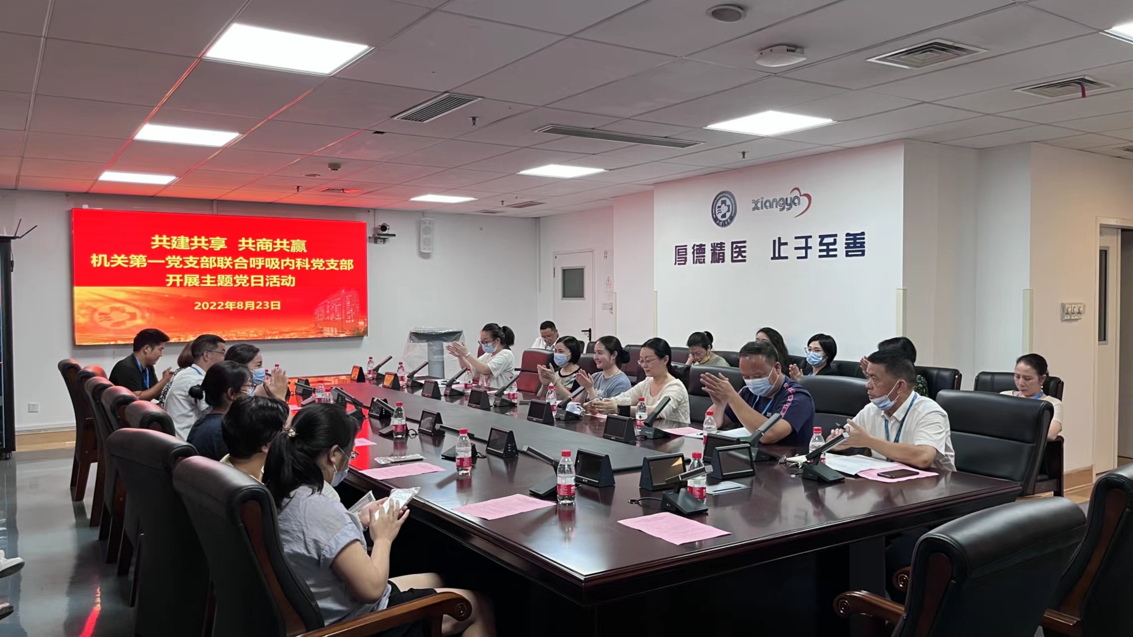 8月23日,学校党建工作样板党支部——第九党总支第一党支部与第一党总支呼吸内科党支部在外科楼19楼会议室,以“共建共享·共商共赢”为主题,联合开展8月份主题党日学习活动。第一党总支书记罗海波、第九党总支书记梁国清现场指导主题党日活动。第九党总支第一党支部与第一党总支呼吸内科党支部共40余名党员参加主题党日学习活动。