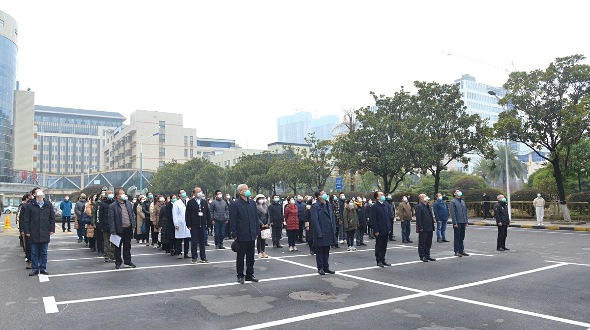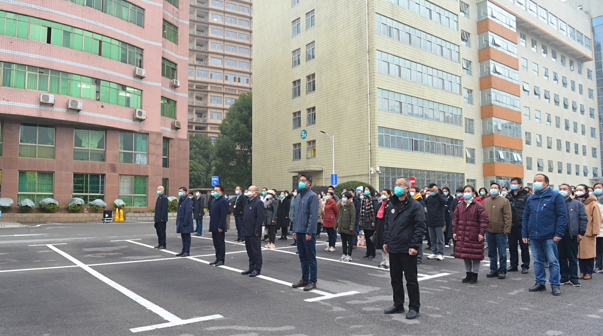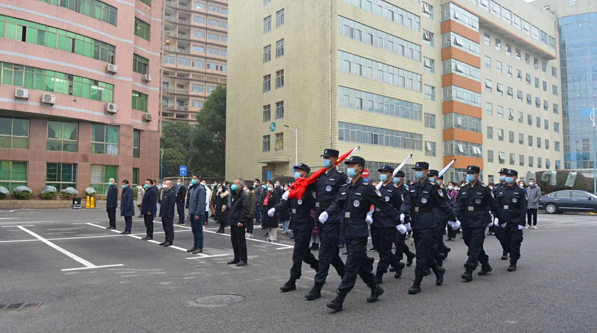 12月30日上午7时30分,中南大学湘雅三医院在综合楼前坪举行升旗仪式,迎接2023年的到来。医院领导、教职工200余人参加。