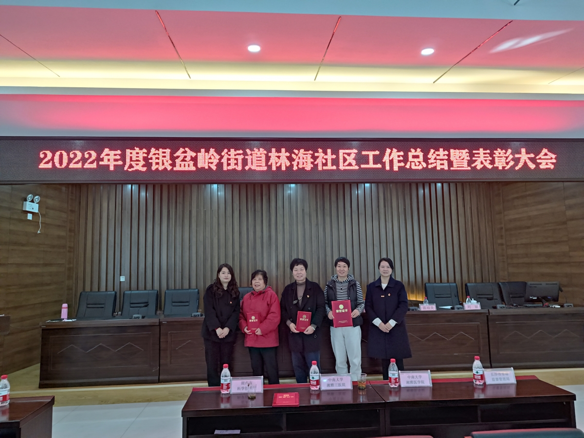 1月11日上午,长沙市岳麓区银盆岭街道林海社区工作总结暨表彰大会在三楼会议厅举行。会上,中南大学湘雅三医院被授予“共驻共建先进单位”,离退休党总支的杨华、巫爱琳、刘亚洲分别获得“共建之星”“自治之星”“网格之星”荣誉。