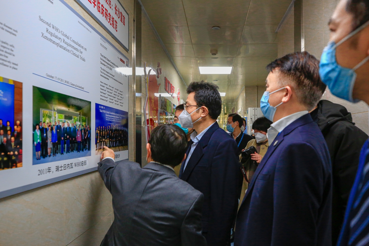 1月13日上午,中南大学校长李建成,党委副书记李景升、付刚华一行专程来到湘雅三医院,视察湖南省异种移植工程技术研究中心,听取了相关工作汇报。湘雅三医院党委书记何庆南,党委副书记杨飞龙,党委委员、副院长朱晒红、欧阳文陪同走访。
