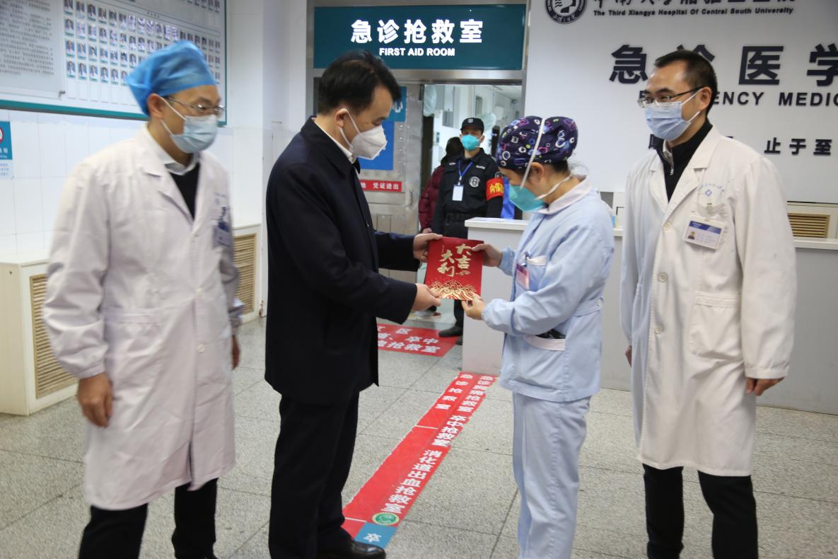 农历大年三十、正月初一,中南大学湘雅三医院领导班子成员以及相关职能部门负责人先后走访各条战线,慰问坚守在岗的职工,探望住院病人,为大家送上新春祝福。