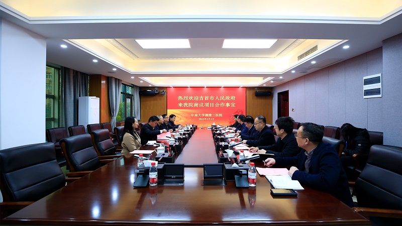 2月3日下午,吉首市委副书记李成晚、市人大常委会副主任孔庆国一行来到中南大学湘雅三医院商议湘西红枫谷老年医院项目合作事宜。医院党委书记何庆南、院长江泓出席,相关职能部门负责人、项目负责人参加会议,医院副院长孙传政主持会议。
