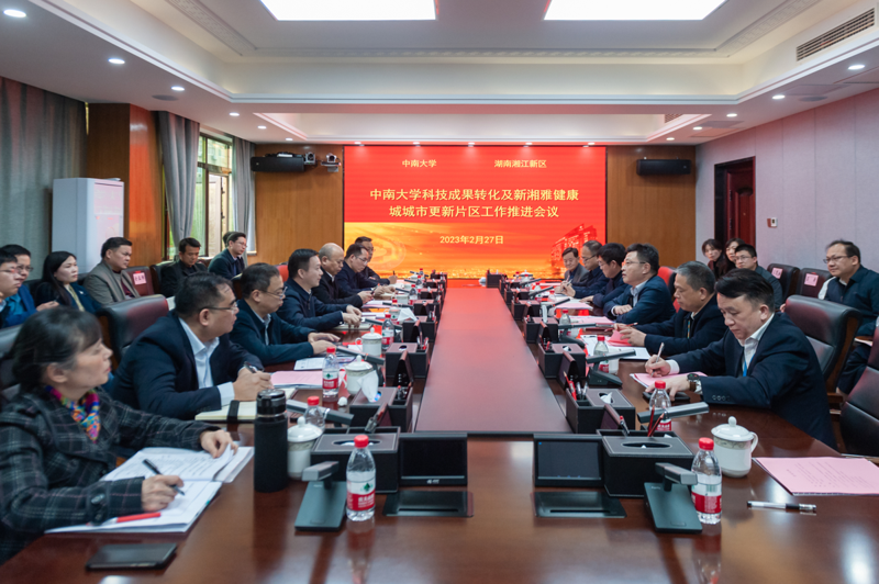 2月27日,湖南湘江新区(长沙高新区)管委会主任、岳麓区区长何朝晖带队调研中南大学科技成果转化及新湘雅健康城城市更新工作并召开座谈会议。湘江新区领导郭力夫陪同调研,中南大学校长李建成,副校长郭学益,党委副书记付刚华,湘雅三医院领导何庆南、江泓、欧阳文、朱利勇、左笑丛参加。
