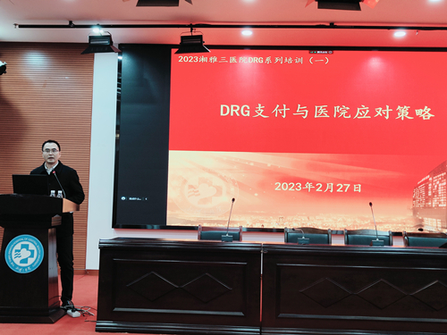 2月27日下午,中南大学湘雅三医院在外科楼二楼学术报告厅开展《DRG支付与医院应对策略》讲座,特邀湘雅医院医务部副主任王庆红副教授就进一步提升医院应对DRG医保支付改革的能力,积极适应DRG付费改革落地进行深入交流。医院副院长孙传政出席会议并致辞,各临床科室主任/副主任、相关职能科室负责人、护士长、总住院等约150余人参加,同时全院近1000人通过线上会议参与讲座。会议由医务部副主任张晓伟主持。