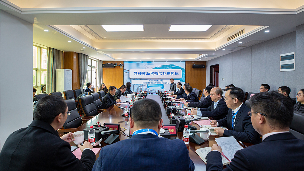 易红听完汇报后充分肯定了王维团队在“异种移植”领域取得的成绩,并对团队当前面临的困难与参会人员进行了充分的讨论。他指出,该研究令人印象深刻且意义重大,可以救治数千万糖尿病患者,同时也具有广阔的产业前景。他要求学校组织相关团队深入调查研究,全面梳理信息,创新工作思路,加强校企合作,帮助王维教授团队切实解决制约发展的关键问题,促进异种胰岛移植治疗糖尿病大规模推广,造福糖尿病患者。