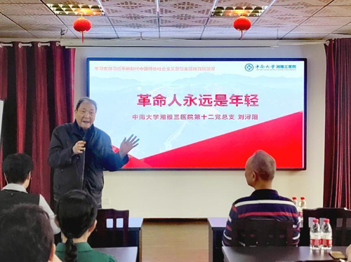 应广大离退休党员要求,大会邀请了刘浔阳老院长为大家讲党课《革命人永远是年轻》。刘老以“革命人永远是年轻”这首歌开头,带领大家探寻革命人为什么年轻的答案,回顾了三院建设初期的艰苦奋斗情况,分析了医院目前学科发展、人才培养、医院管理等方面取得的成绩。他非常坚定地告诉全体党员:在党的坚强领导下,湘雅三医院的明天会更好,发展的路一定会越走越好、越走越宽。