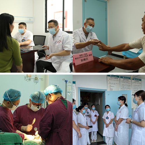 10点,湘雅三医院专家们兵分三路,与当地同道展开临床经验交流与讨论的同时,在门诊进行专家义诊。专家们详细问诊、仔细查体,竭尽全力为当地病友答疑解惑,并提供相应的诊疗方案,当天接待义诊病友共80余人次。在当地医护人员的组织协同下,此次义诊取得圆满成功。义诊的同时,臧晓方教授、周嘉辉副教授受邀为当天手术患者进行手术指导,完美呈现了无影灯下的“刀光剑影”。杨驰护士长带领的护理团队进行了护理查房,查房结束后,杨驰护士长就疼痛管理、血栓管理、科室人文建设等方面进行了详细讲解,给予当地护理团队耐心细致的指导。