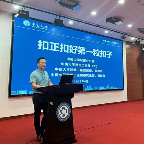 6月12日,湘雅三医院纪委、监察办、研究生部、思政部联合组织了“扣正扣好第一粒扣子”的毕业研究生廉洁文化教育讲座。医院纪委副书记何君主讲,研究生部副主任李夏雨主持,全体2023届毕业研究生参加。此次讲座旨在帮助即将走出校园走入社会踏上新征程的同学们坚定信仰,增强廉洁自律意识,自觉抵制各种诱惑,保持廉洁修身,扣正扣好他们的第一粒扣子。