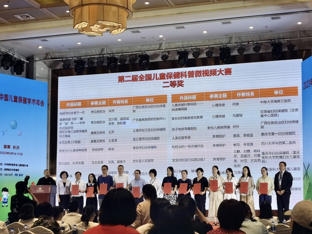 9月15日,在第二届“全国儿童保健科普微视频大赛”上,中南大学湘雅三医院儿童保健中心何微护士长的作品《儿童健康科普视频——阅读障碍篇》在“心理保健”主题版块荣获二等奖。