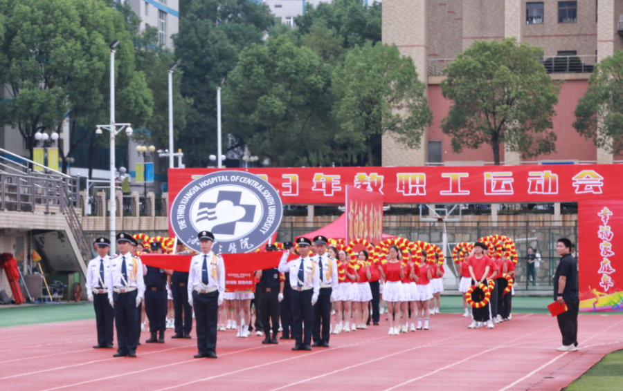 中南大学党委副书记、工会主席付刚华,湖南省教育工会副主席邓曼,中南大学体育教研部副部长易国忠,中南大学湘雅三医院领导江泓、张劲强、费云、朱利勇、曹科、孙传政出席开幕式。医院党委副书记、工会主席杨飞龙主持开幕式并转达了党委书记何庆南对运动会的祝福。