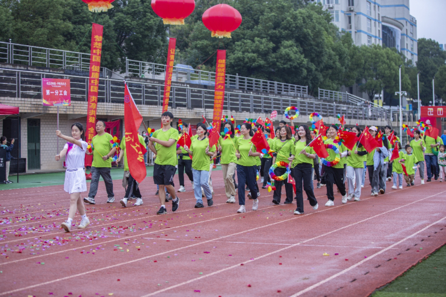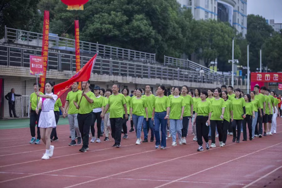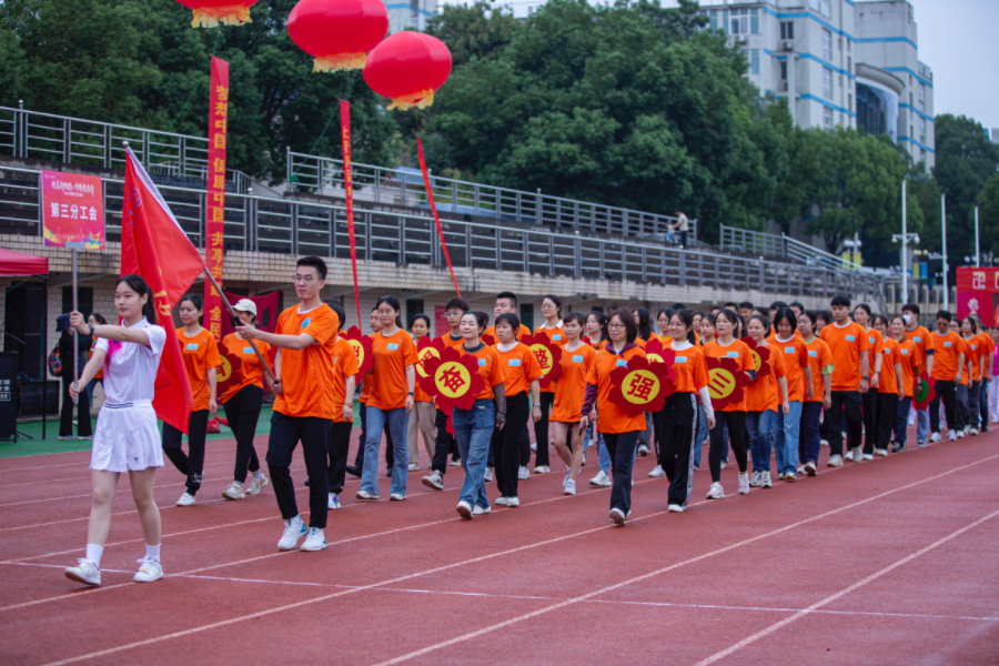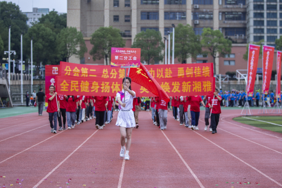第九分工会方阵由机关党总支、研究生党总支、离退休党总支组成。办公室里,他们意气风发,激扬文字,为新湘雅高质量发展尽职尽责;运动场上,他们朝气蓬勃、勇往直前,为教职工运动会增辉添彩。