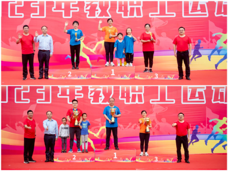 付刚华、邓曼、江泓为运动会授会旗、裁判员旗、运动员旗。