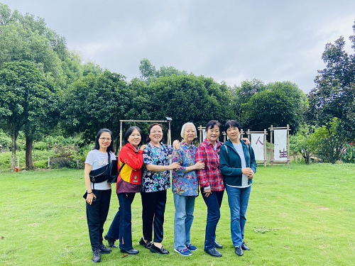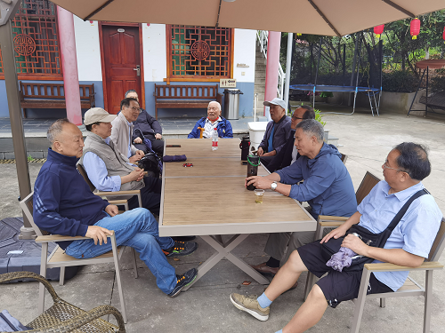 参观学习结束后,老同志们在跳马镇天石山庄参观休闲,感受改革发展中新农村的美丽变化。