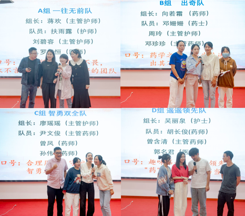 本次活动吸引了院内职工热情参与,经过前期层层选拔,最终筛选出16位医务人员参与比赛。选手通过随机抽签组成四支队伍。活动现场,各组参赛选手依次上台进行风采展示,台下观众以及亲友团热情洋溢地为选手们加油鼓气,各支参赛队伍的个性化介绍给大家留下了深刻的印象。