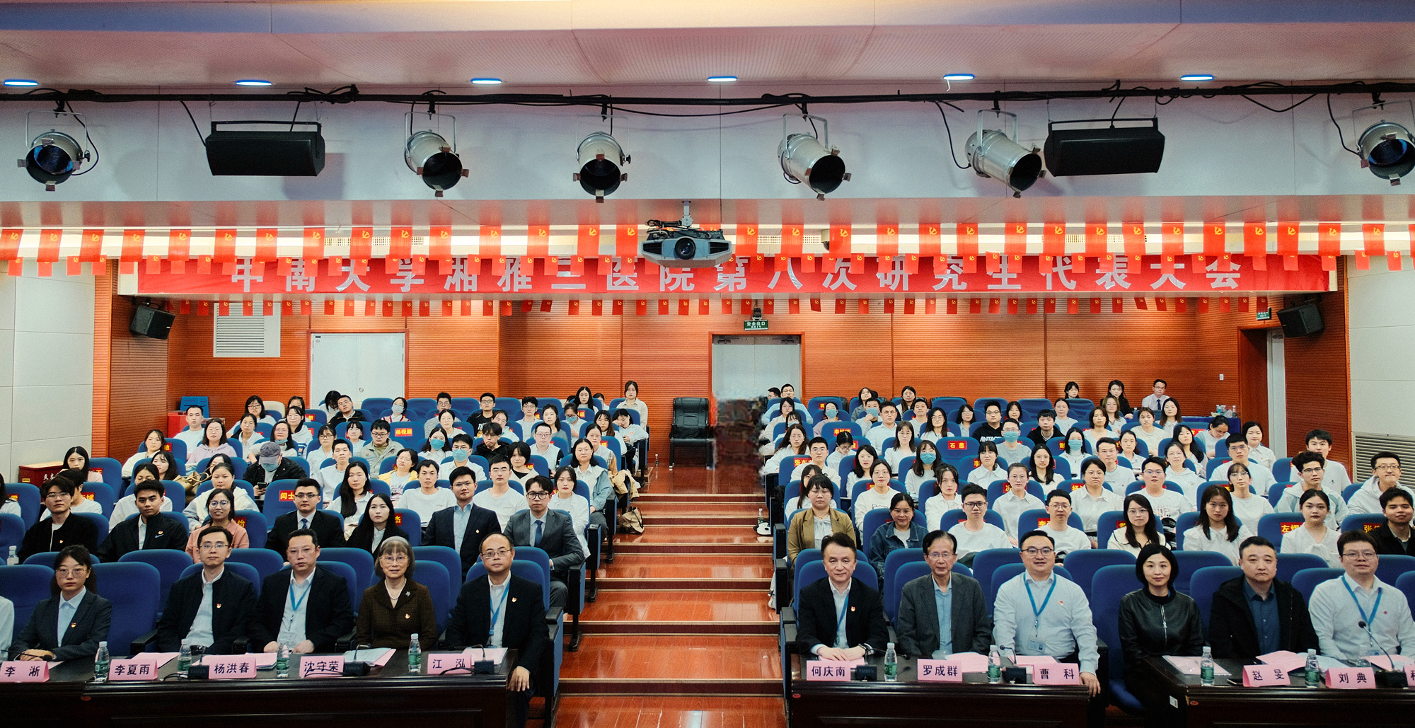 党委副书记、院长江泓致开幕辞。他对长期以来关心和支持我院研究生工作的各位老师和同学们表示诚挚问候和衷心感谢,同时肯定了过去一年院研究生会在学术、文体、社会服务等各个方面所取得的优异成绩。他强调,研究生会和各位代表们要“深化思想引领,勇担新时代新使命”、“凝聚青春力量,书写湘雅新华章”、“加强自身建设,展现新征程新风采”,用实际行动践行医者誓言,为健康中国建设贡献青春的力量,并预祝大会圆满成功。